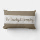 Mooie aardtinten met een lichte berichtband over de gehele kussen. Van bericht (in dezelfde kleur als de kussen) zegt "Wees dankbaar voor elke dag" en bericht op de achterkant van de kussen staat "Je bent geblusteld" - elegant, vriendelijk lettertype. Beide berichten zijn volledig editable.
