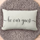 Moderne trendy scriptkalligrafie met een bloeiend lezen "Wees onze gast" op deze elegante zwarte en ivoorlelub gooien kussen, perfect om gasten thuis, vakantieverhuur of bed en ontbijt te verwelkomen.
