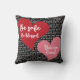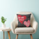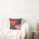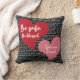 Custom Design Wees veilig, Wees gezegend, Je bent geliefd Sierkussen. Het heeft rode en roze harten met een zwarte achtergrond met dezelfde woorden in het wit.