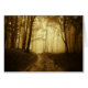Weg in een donker bos met mist