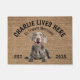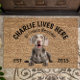 Weimaraner Gepersonaliseerd Hondenliefhebber welkom deurmat. Deze welkomstmat kan worden gepersonaliseerd met de naam van uw hond, de slogan kan ook worden gewijzigd of u kunt een afbeelding van uw eigen hond gebruiken (zorg ervoor dat het doorzichtig is). Tekst: Charlie woont hier... Alle traktaties welkom Bewerk het ontwerp om lettertype, kleuren en achtergrondkleur te wijzigen. Gebruik bij het vervangen van het afbeelding van uw hond een doorzichtig afbeelding. Maakt een geweldig cadeau voor een housewarming party, feestdagen, hondenliefhebbers en de meeste gelegenheden.