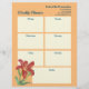 Ontworpen op basis van mijn waterverf-afbeelding van oranje lelie met felle levendige delicate oranje bloemblaadjes en frisse donkergroene bladeren. Het ontwerp is dubbelzijdig, voor weekplanner verdeeld in zeven dagelijkse secties. Het heeft een duidelijke licht oranje achtergrond en kan worden aangepast met uw eigen teksten.