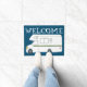 WELCOME Cute Camper Motorhome Art over blauw Deurmat