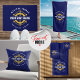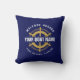 Voeg een vleugje nautische charme toe aan uw huis met dit gepersonaliseerde kussen! Met een klassiek scheepswielontwerp, omcirkeld door touw en gepersonaliseerd met de naam van uw boot, is dit kussen perfect voor booteigenaren, huizen aan het meer, strandhuizen of iedereen die een nautisch thema waardeert. De rijke marineblauwe en gouden stof biedt een verfijnde achtergrond voor het fris witte ontwerp.