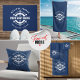 Voeg een vleugje nautische charme toe aan uw huis met dit gepersonaliseerde kussen! Met een klassiek scheepswielontwerp, omcirkeld door touw en gepersonaliseerd met de naam van uw boot, is dit kussen perfect voor booteigenaren, huizen aan het meer, strandhuizen of iedereen die een nautisch thema waardeert. De rijke marineblauwe stof biedt een verfijnde achtergrond voor het fris witte ontwerp.
