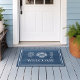 Een welkome kustkoraal, schelpen en een Seahorse Blue Achtergrond Deurmat. Dit ontwerp is voorzien van de witte silhouetten van een prachtige tropische schelpen, koraal en het zeepaardje op een blauw waterverf getextureerde achtergrond. Het kunstwerk en ontwerp op deze deurmat is gemaakt door Totally Coast designer, Jillee K. Klik hieronder gerust op "Bericht" als u vragen of vragen heeft. Jillee zou graag van je horen en weten wat je lief zou hebben.