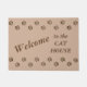 Dit schattige portier heeft een boven- en ondergrens van vuile pootafdrukken over een lichttan achtergrond. Het centrum zegt nu Onthaal aan het KAT huis in bruin, maar kan gemakkelijk aan om het even wat worden aangepast u zou willen.
