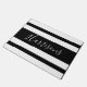 Een hoogwaardige deurmat, dit ontwerp is voorzien van een zwart-wit gestreept patroon met jouw naam in het midden dat fancy lettertype gebruikt. Geweldig voor een nieuwe eigenaar, beveel vandaag nog uw wensen! Stripes: AMBillustraties http://www.etsy.com/shop/AMBillustrations/