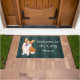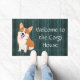 Welkom bij de Chubby Corgi House-doormat met een jong meisje en corgi-cartoon. Ontworpen door: www.zazzle.com/CorgiGifts