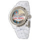Sluit het Welkom bij Fabulous Las Vegas Sign. als achtergrond afbeelding toegepast op een fabelachtig wit enamel enamel-horloge voor vrouwen