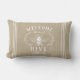 Welkom gasten met deze schattige bijen met een kussen met een stijl, een afbeelding van een honingbij, voorzien van botanische bladeren en touwtrim op een zachte, gekleurde achtergrond. "Welkom bij onze korf" staat in witte letters. Pas je aan met je familienaam onderaan.