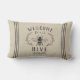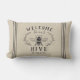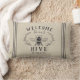 Welkom gasten met deze schattige bijen met een kussen met een honingbijenillustratie voorzien van botanische bladeren en touwtrim die op een zachte beige achtergrond gedetailleerd zijn. "Welkom bij onze korf" staat in het kool. Pas je aan met je familienaam onderaan.