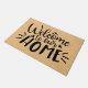 welkomtypografiecitaatomazwart schriftrustieke deurmattengroenenieuwe huiseigenarenkleinkinderenwelkom bij ons thuis