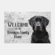 Welkom bij het startpunt "Uw familienaam" of verander in het huisje. Een hond met de naam "Welkom mat" voor de familie die van hun hond houdt als deel van hun familie. Het ontwerp bevat een prachtig zwart lab. Pas je familienaam aan.