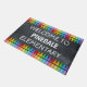Schoolverwelkomde doormat met rij krijtjes onderaan en bovenaan. Ideaal voor binnendeuren of voor deur tot kantoor. Zie ook onze klaslokalen welkome slaapzalen.