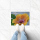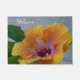 Een Doormat voor de voorkant van je huis, met een foto van een gele Hibiscus bloem en het woord Welkom.