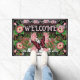 Designer roze bloemenrode vlinder welkom deurmat voor home decor behoeften. Een veranda- of terrasontwerp dat aan veel kleurcodes kan voldoen!
