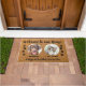Welkom gasten met deze vreemde doormat! "Welkom in ons huis." Pas uw foto's en namen aan uw huisdieren aan. Deze Welkom Doormat is uitgerust met een robuust natuurlijk faux koir en zwart design met pootafdrukken. COPYRIGHT © 2022 Judy Burrows, Black Dog Art - Alle rechten voorbehouden. Welkom Funny Dogs House Custom 2 Pet Photo Doormat