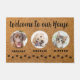 Welkom gasten met deze vreemde doormat! "Welkom in ons huis." Pas uw foto's en namen aan uw huisdieren aan. Deze Welkom Doormat is uitgerust met een robuust natuurlijk faux koir en zwart design met pootafdrukken. COPYRIGHT © 2022 Judy Burrows, Black Dog Art - Alle rechten voorbehouden. Welkom Funny Pets House Custom 3 Cat Dog Foto Doormat