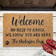 Welkom gasten met deze vreemde doormat! "Geen behoefte om te kloppen, we weten dat je hier bent." De honden. Deze Welkom Doormat is uitgerust met een robuust natuurlijk faux koir en zwart design met pootafdrukken. COPYRIGHT © 2022 Judy Burrows, Black Dog Art - Alle rechten voorbehouden. Welkom Geen noodzaak om Funny Pet Dog Coir Entry Doormat te blokkeren
