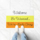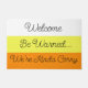 "Welkom, wees gewaarschuwd, we zijn Kinda Corny" Candy Corn Striped and kleurored Welcome mat. Welkom truc-of-behandelaars deze Halloween met dit super schattige slaapsel.