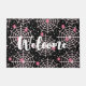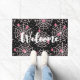 Welkom deurmat met een schattig naadloos patroon met witte cobwebben en roze spinnen.