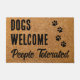 Welkom gasten met deze vreemde doormat! "Welkom honden, mensen getolereerd". . Welkom Doormat - Dog Paw Print Vloermat. Robuust natuurlijk faux koir en zwart design met pootafdrukken. COPYRIGHT © 2020 Judy Burrows, Black Dog Art - Alle rechten voorbehouden.
