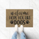 Begroet uw gasten met charme en humor met deze "Welcome Hope You Like Dogs" deurmat. Met een vriendelijke boodschap en schattige pootafdrukken is deze deurmat ideaal voor hondenliefhebbers. Gemaakt van duurzame materialen, het voegt een warme en gastvrije touch aan uw ingang, terwijl het houden van vuil en puin buiten.