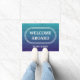 Welkom in de deur van het bord met de naam van de deurmat
