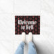 Welkom in de hel van Satan's vorkpatroondeur. Voeg uw eigen aangepast bericht, familienaam, monogram, achternaam of grappige prijsopgave toe. Cool cadeauidee voor nieuw thuis/huishouden of verloving/verjaardagsfeest. Aangepaste sjabloon van het slaapbord. Creëer uw eigen kleine of grote binnenmat / tapijt voor de deur aan de voorzijde / de ingang of de hal / plaats. decor/decoraties voor uw huis.