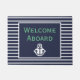Perfect chic, klassiek marineschandaal en wit aanpasbaar Welkom Aboard-doormat voor je boot van een marineschuif