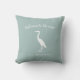 Dit eenvoudig ontworpen heron aan de buitenzijde van de gooikussens is voorzien van een gesilhouetteerde haron (of intrede) die met één gebogen been staat, met aanpasbare gekromde tekst die luidt: "Welkom in de rivier" boven de grafische naam en de naam van de rivier, het meer of de regio onder de afbeelding aan de voorkant - achterkant van de kussens bevat een patroon van kleinere haron silhouettes met bladzijden - tekst - tekst en de afbeelding - de tekst en de afbeelding is wit op een blauwgroen, wit, wit, wit, wit, wit, wit, wit, wit, wit, wit, wit, wit, achtergrond - door katz_d_zynes
