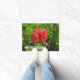 Deze welkome mat heeft een mooie grote tropische bloem. Groene bladeren omringen de roze bloem met "Welkom in het paradijs" in witte lettertype onderaan de slaapzaal. Eenvoudig en snel aanpassen.