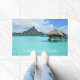 Doormat met een foto van een paradijs met een luxe honingmaoord in de blauwe lagune van Bora Bora met een uitzicht naar het tropische eiland in Frans-Polynesië en met de tekst "Welkom in het Paradijs".
