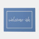 Het is grappig omdat het waar is. U bent welkom. Deze humoristische deurmat is voor introverte mensen, de antisociale, en de sociaal ongemakkelijke mensen, die gasten met een beetje aarzeling en misschien zelfs een beetje ongerustheid ontvangen. Eenvoudige, elegante scripttypografie op een leistanblauwe kleur achtergrond. Onverwacht, eigenaardig en een beetje sarcastisch.