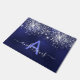 Een stijlvolle marineblauwe achtergrond met faux zilver glitter stof. De kleur van het blauw is ongelijk. Personaliseer en voeg uw familienaam en monogram letter, initiaal toe. Wit en blauw gekleurde letters. De naam is geschreven met een trendy handschrift met swashes. Als u de swashes alleen wilt laten verwijderen, verwijdert u de voorbeeldnaam door de spaties of emoji's voor en achter de naam te laten.