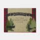 Perfect als gastess cadeau voor een familie die hun gasthut met u deelt voor het weekend of als een welkome mat voor uw uitgenodigde gasten! Op maat gemaakt met de naam van uw familie en het bericht dat deze buffelvlek in de rode en zwarte cheque is voorzien van een houten plaat, een houten achtergrond en een spandoek met de stijl van het krijt met het woord "Welkom" in een handgeschreven lettertype. Een mos en een hert met geweien pieken uit de bergen of de oeverbossen. Alle auteursrechten op kunstwerken van Audrey Jeanne Roberts, alle rechten voorbehouden.