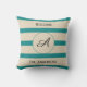Een beige en blauwgroen gestreepte decor kussen, ga uw familieinitiaal en naam op de voor en rug in gebruikend personaliseer dit gebied van de sjabloon op het recht. Andere beschikbare stijlen.