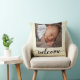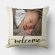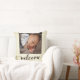 Dit is een eenvoudige kussen met tekst geschreven welkom, met de foto van de douane baby op de voorzijde. De achterkant is glad crème.