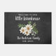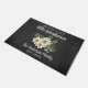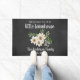 roestkleurig, landstijl doormat met witte tekst en een witte maaltijd op een zwarte achtergrond. De tekst zegt: "Welkom in ons kleine boerderij." Pas het aan door uw familienaam toe te voegen en de gevestigde datum/trouwdatum.