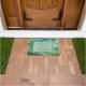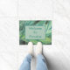 Deze welkomstmat is versierd met grote gestreepte groene tropische bladeren. Dit prachtige gebladerte dat veel voorkomt in de tropen overlapt het creëren van lagen van groene en gele bladeren. De strepen op de bladeren creëer hebben een abstract geometrisch patroon dat een uniek tropenelement aan uw voordeur verleent. "Welcome To Paradise" verschijnt in het midden van een grote lichtgroene rechthoek.