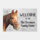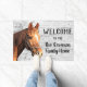 Welkom bij het startpunt "Uw familienaam" of verander in het huisje. Een paardrijnige welkome mat voor de familie die graag met hun paarden rijdt of met hen concurreert.