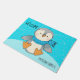 Zoete pinguïn kunst. Een gepatterde blauwe achtergrond. Aangepaste klepmat met aanpasbare tekst. Opties voor wijzigingen in welkomsttekst en familienaam. Snelle en gebruiksvriendelijke sjabloon.