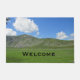 Breng een hint van natuur naar je voordeur, dit portret met een prachtige foto van Yellowstone National Park. Het groene gras vult de vallei en is omhuld met de bergen die zijn voorzien van een wolkengestippelde blauwe hemel. Het groene gebied verstrekt de achtergrond voor "Welkome"die kan worden aangepast aangezien u wenst.