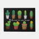 Cactus de deurmat met kleurrijke afbeeldingen van planten met een pottendop, op een zwarte achtergrond. De witte tekst is klaar om te personaliseren om te lezen wat u wilt. Mooie toevoeging aan de voordeur van iemand.