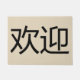 Chinese welkomstmatten voor de deur naar uw huis, ontworpen in Chinese karakters in grote zwarte letters op een beige achtergrond met de mogelijkheid om de achtergrondkleur te wijzigen. Welkom uw gasten en bezoekers in uw huis of bedrijfsruimte.