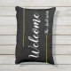 Welkomstnaam zwarte goud en witte scripttekst buitenkussen