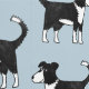 Een Welsh Border Collie herdershond patroon voor dierenvrienden. Zwart-wit op een gedempte stoffige blauwe achtergrond. Originele kunst van Nic Squirrell.