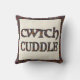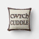 Een Sierkussen met de woorden 'knuffel' en 'vangst' (Welsh voor 'knuffel' of 'knuffel'), gevuld met een duister bloemenpatroon op een zwarte achtergrond.
