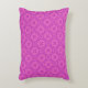 Een chique langwerpige accentkussen of kussen, met een traditioneel Welsh wandtapijtpatroon in magenta op een felroze achtergrond. Dit patroon kan worden aangepast om een kussen of kussen te passen.